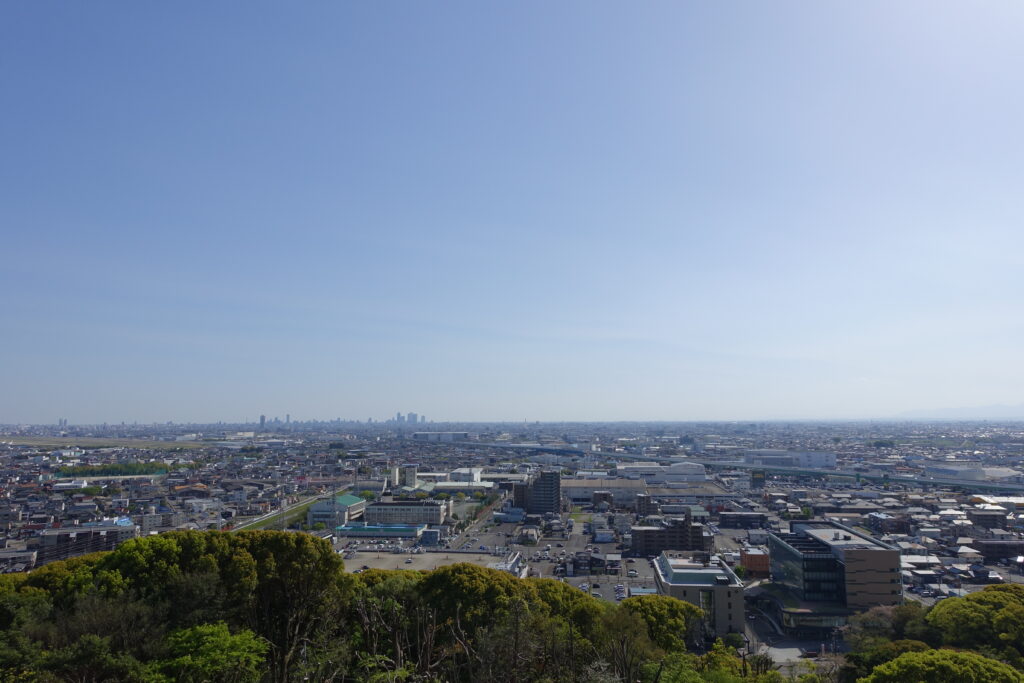 天守からは、濃尾平野が一望できた。遠くには名古屋市街も見える。